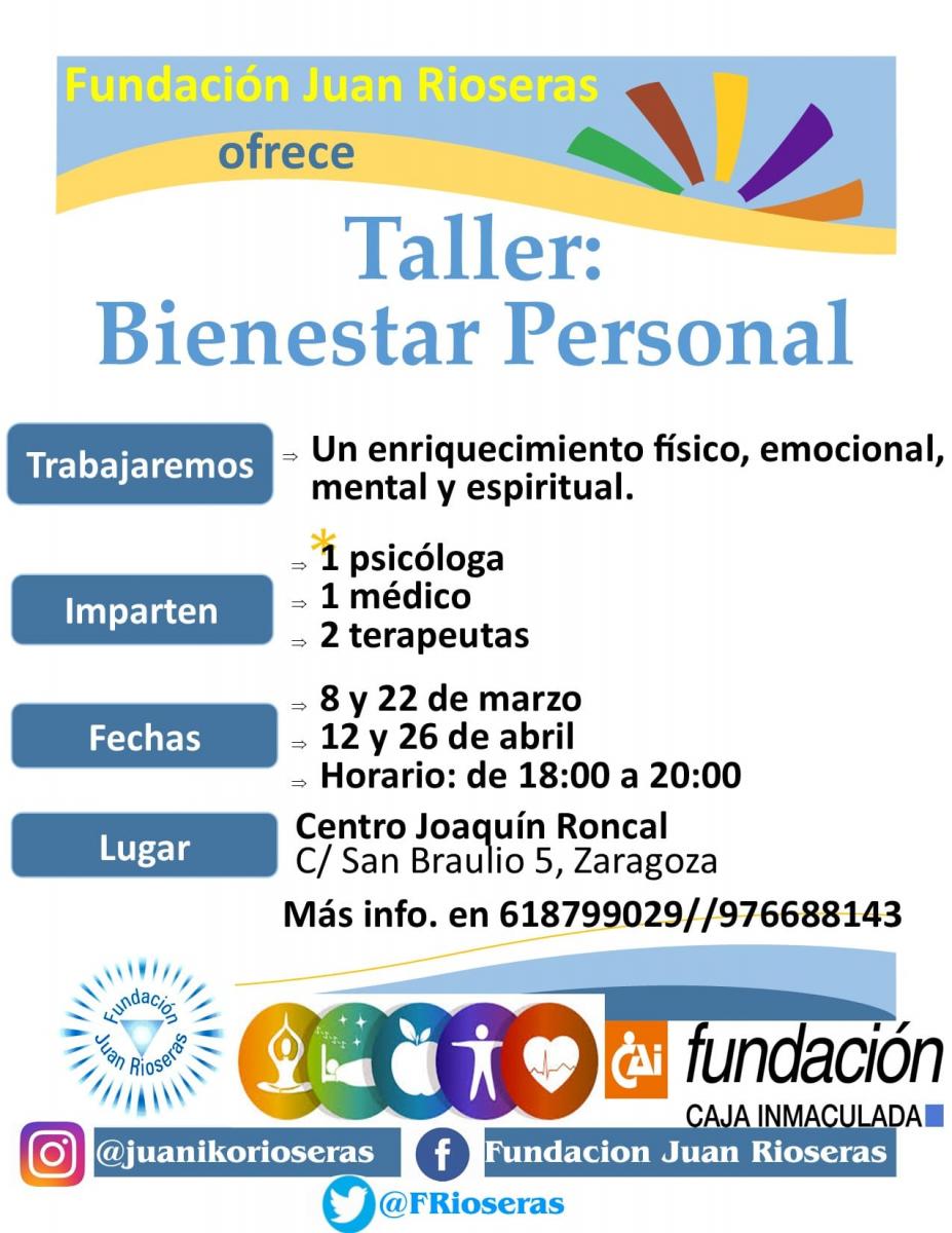 Continuamos con nuestros talleres de Bienestar Personal en el Centro Joaquín Roncal de Zaragoza. Animaros.